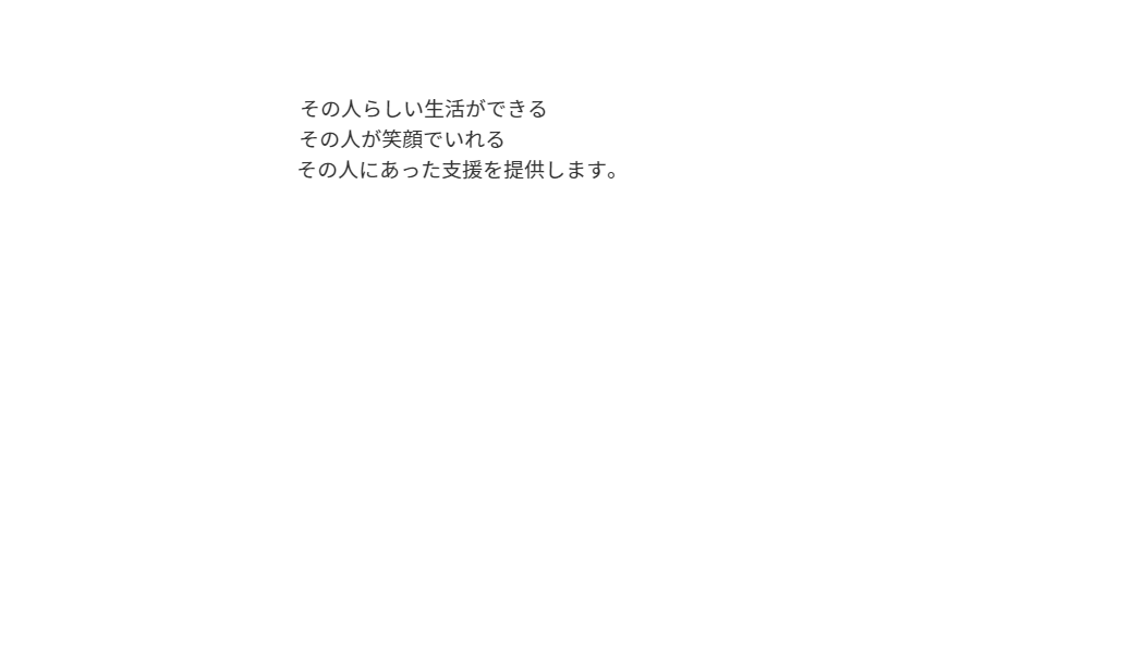 私たちは「人間の尊厳」を守り、障がいがある方々が住み慣れた地域で自立した 生活を送ることができるようその人にあった支援を提供します。